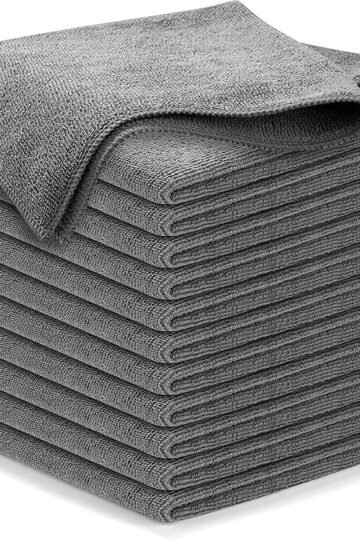 USANOOKS Microfiber Cleaning Cloth Grey – 12 Pcs (12.5″x12.5″) – High Performance – 1200 Washes, Ultra Absorbent Microfiber Towel Weave Grime & Liquid for Streak-Free Mirror Shine – Car Washing Cloth